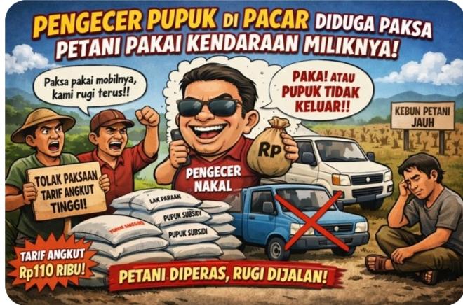 “Pihak pengecer memasang tarif angkut kepada kami sebesar Rp110.000 untuk satu pasang pupuk. Kami juga dipaksa menggunakan kendaraan milik pengecer. Kalau tidak, pupuk tidak boleh keluar dari gudang,” ungkap salah satu anggota kelompok tani yang enggan disebutkan namanya, Jumat (19/12/2025).