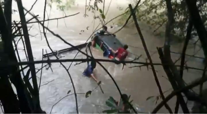 Warga setempat terlihat berusaha mengevakuasi mobil nahas tersebut menggunakan peralatan seadanya di tengah arus yang sangat kuat.