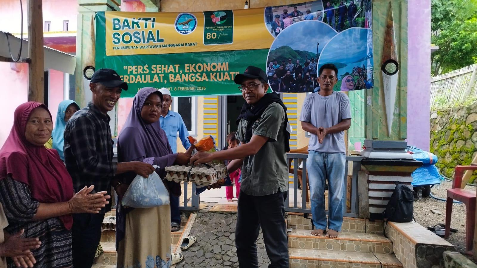 Sehari sebelumnya, dalam rangkaian peringatan HPN, PWMB juga melaksanakan kegiatan bakti sosial dengan menyalurkan bantuan sembako kepada masyarakat nelayan di Kampung Menjaga, Desa Macang Tanggar, Kecamatan Komodo, Minggu (8/2/2026).